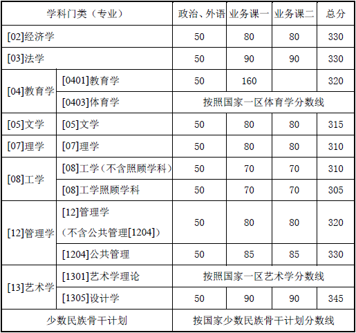 2. 少数民族骨干计划、体育学、艺术学理论、软件工程的分数线由教育部统一划定。