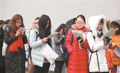 12月24日,在南京林业大学考点,考生们在等候入场时复习。 刘建华 摄(新华社发)