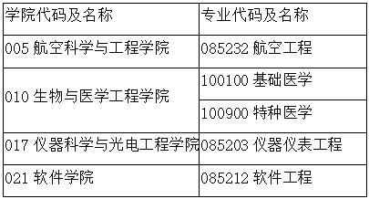004能源与动力工程学院、006计算机学院、010生物与医学工程学院、011人文社会科学学院、013交通科学与工程学院、015宇航学院、017仪器科学与光电工程学院、024中法工程师学院以及027化学与环境学院的个别专业,则因有缺额而接受第一志愿报考北航的考生申请调剂。