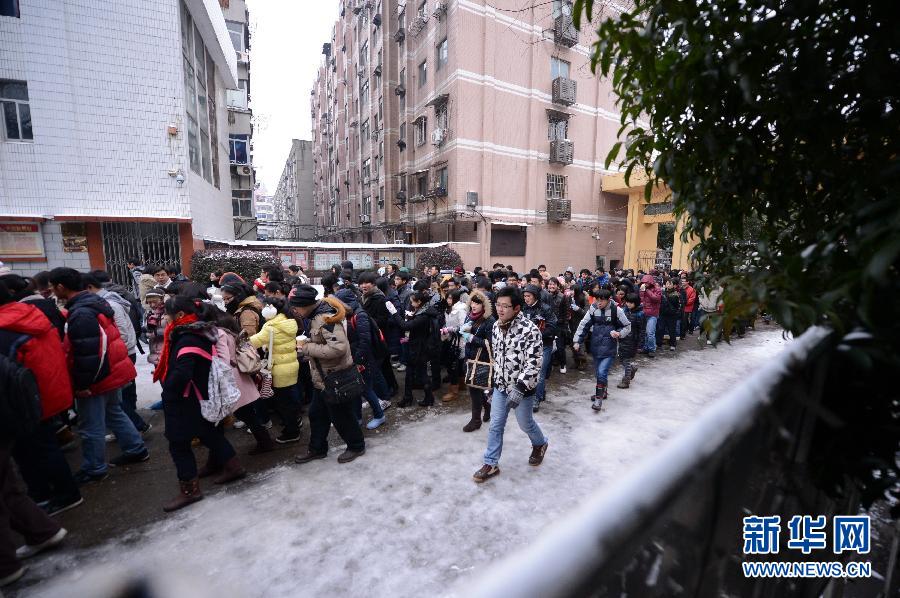 1月5日,在江西南昌市十中考点,考生们进入考场。当日,2013年全国硕士研究生招生考试拉开帷幕。据统计,今年全国共有约180万人参加考试,创历史新高。 (记者:周密)