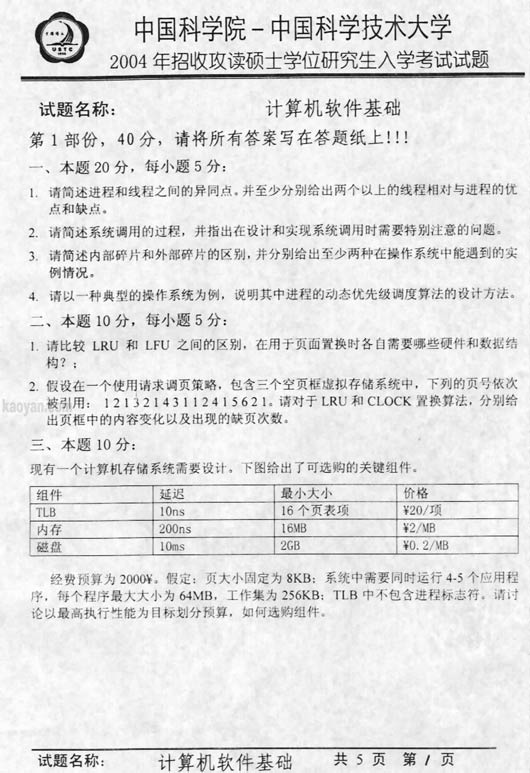 试题:(中科院)2004年计算机软件基础试题