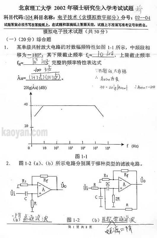 试题:(北理工)2002年电子技术(含模拟数字部分)