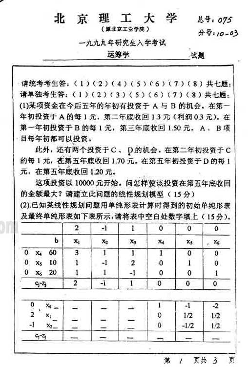 试题:(北理工)1999年运筹学试题