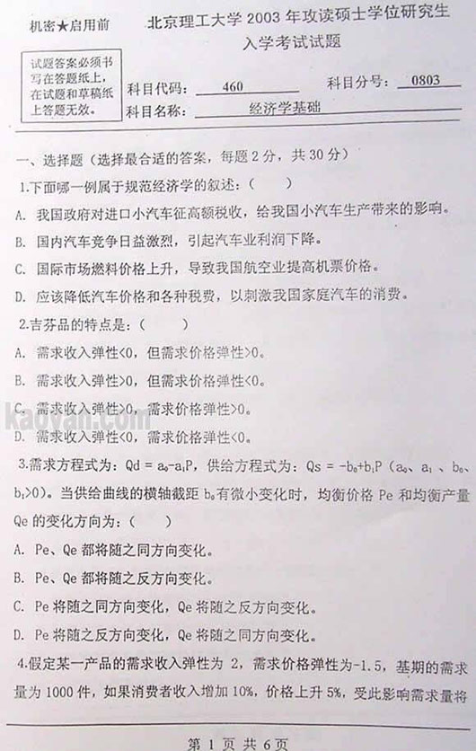 试题:(北理工)2003年经济学试题