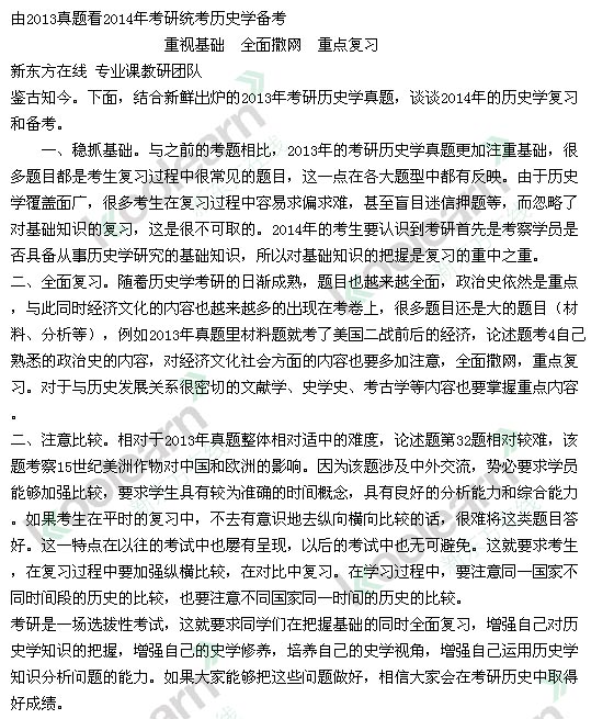 2013历史学KY.COM真题解析 2014备考重基础全面撒网