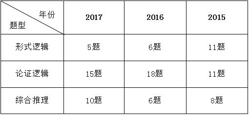 通过梳理2015-2017的真题分布情况(如上图),明显发现管综逻辑的命题趋势:形式逻辑题量减少,论证题量相对持平,而综合分析题比例日趋上涨。这与近年来管理类、会计等专业硕士的热招是紧密相关的。伴随分数线的飙涨,考试难度也日趋加大,而形式逻辑由于是必然性推理,只要牢记知识点,多做练习,题目容易上手,正确率也相对较高,因此出题量有所减少。论证逻辑主要考察对题干的的理解,对论证方式的掌握,选项迷惑性较强,难度相对更大,更能拉开考生分数。综合推理更是对考生逻辑能力的全面考察,信息繁杂,考场上时间有限,很多考生无从下手,是失分率较高的题型。