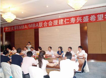 8月13日,武汉大学EMBA/MBA联合会援建仁寿县兴盛希望学校捐赠仪式在眉山市举行。团省委副书记、省青联主席周键,全国青联委员、武汉大学经济管理学院常务副院长李燕萍,湖北省青联常委、武汉大学EMBA/MBA联合会负责人,眉山市委常委、纪委书记吴小可出席捐赠仪式。眉山团市委、仁寿县政府、县教育局、团县委、兴盛中学等相关负责人参加了捐赠仪式,仪式由眉山团市委书记郭建国主持。